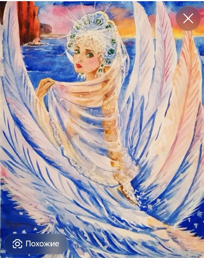 Изящная царевна, наполовину – прекрасная девушка, наполовину лебедь, стала не столько персонажем мифологии народных сказок, сколько распространенным образом в русском искусстве. Чудесная птица-лебедь, живущая на берегу синего-синего моря, сначала прилетела в пушкинскую “Сказку о царе Салтане”, затем в одноименную оперу Римского-Корсакова, а потом навсегда осталась в знаменитейшем врублевском шедевре.